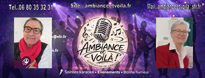 Ambiance et voilà propose des activités musicales, karaoké, possibilité de concert et dansantes pour des matinées ou des soirées privées ou autres concernant des anniversaires, des mariages, des repas de personnes âgées dans des résidences seniors, pour des mairies, etc...